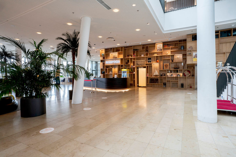 Arborant un engageant « AHOI! », le JUFA Hotel, sis dans le quartier HafenCity de Hambourg, accueille ses visiteurs au moyen d’un agréable aérotherme chauffant le vaste lounge d’entrée élégamment aménagé par de nombreux meubles au design soigné. Le « AHOI! » rappelle immanquablement que l’on se trouve directement au bord du Baakenhafen. Le rideau d’air chaud Kampmann, quant à lui, assure que l’air frais marin remontant l’Elbe reste à l’extérieur.