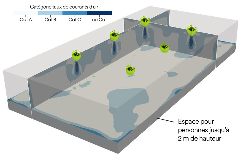 Résultat de la simulation : aucun risque de courant d’air dans l’espace pour les personnes.